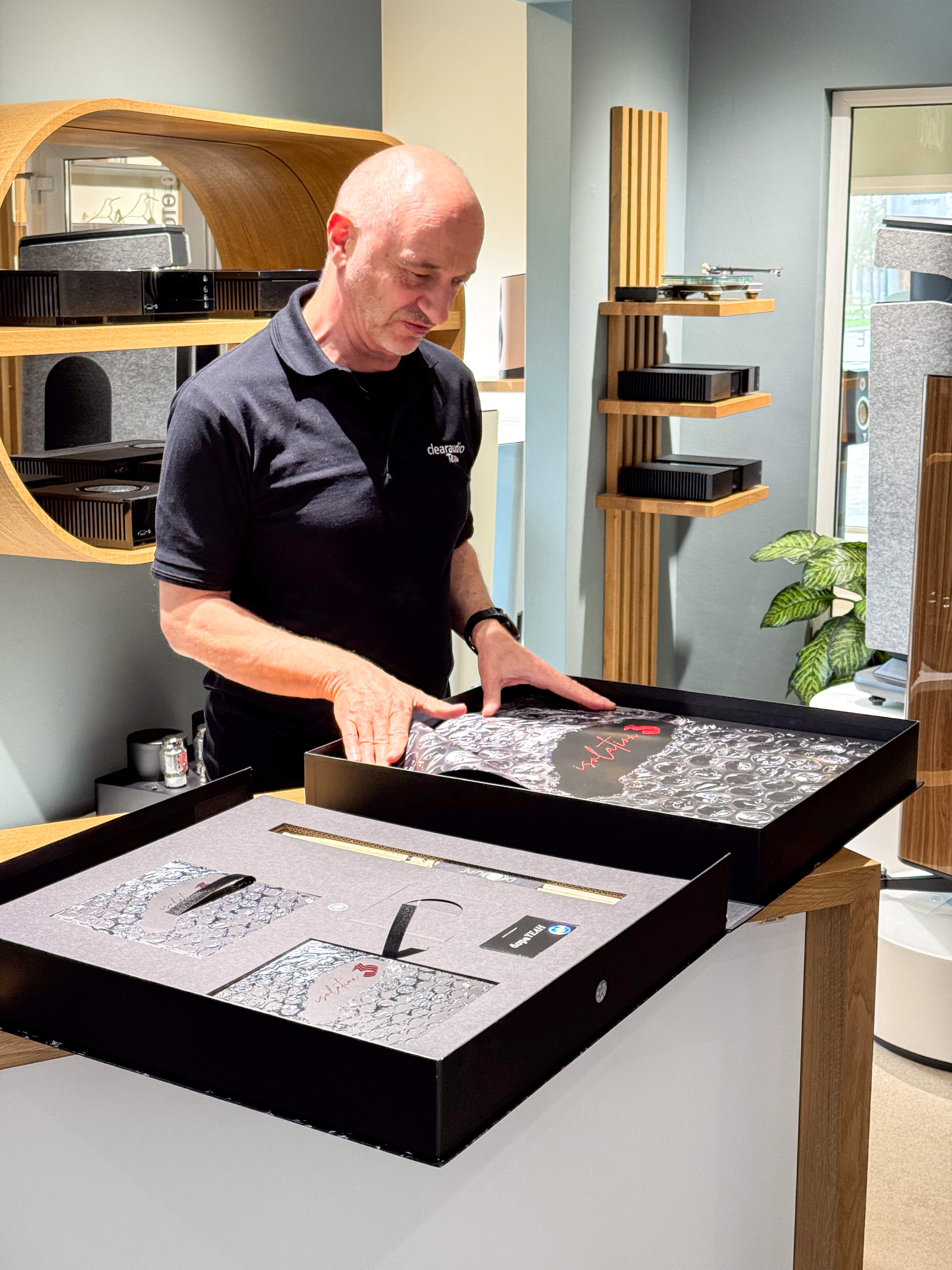 Mit dabei: Robert Suchy – Geschäftsführer und kreativer Kopf hinter Clearaudio. Er führte persönlich durch die Sessions und gab spannende Einblicke in Entwicklung, Philosophie und Fertigung der fränkischen Manufaktur.
